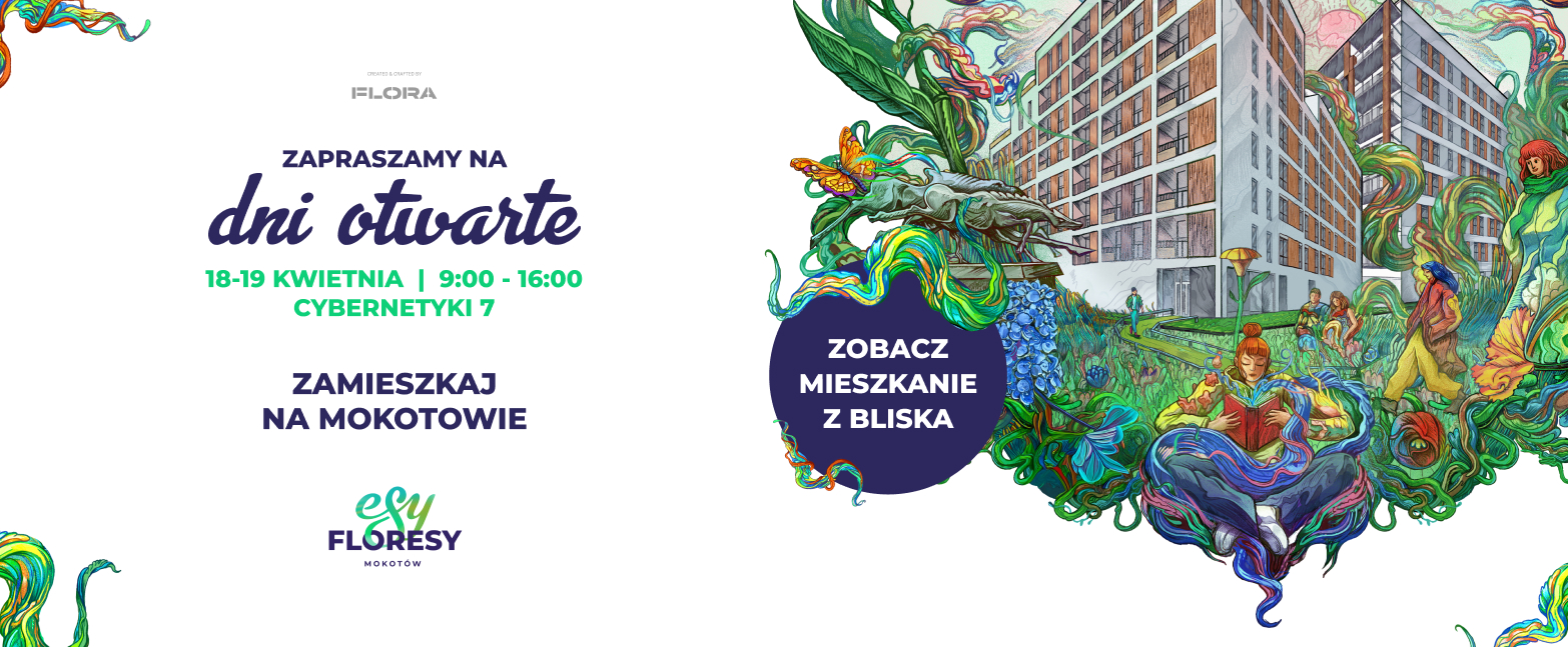 Rozkwitaj razem z Esami Floresami w komfortowej przestrzeni wśród zieleni mokotowa. Sprawdź promocyjne oferty* na 4-pokojowe mieszkania w naszej wyszukiwarce mieszkań lub zapytaj o nie w biurze sprzedaży: